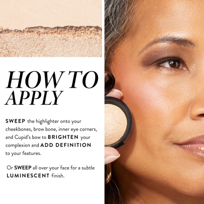 Our cult-favorite low glow highlighter delivers radiance to cheekbones, brightens the inner corner of the eyes, defines the cupid’s bow for a fuller looking pout, or can be worn all over your face for a subtle luminescent finish. Baked for 24 hours on terracotta tiles, then hand-finished into silky domes of powder by Italian artisans, this brightening formula is infused with antioxidants Centella Asiatica and White Tea Extracts to protect skin — a truly all-in-one beauty solution.