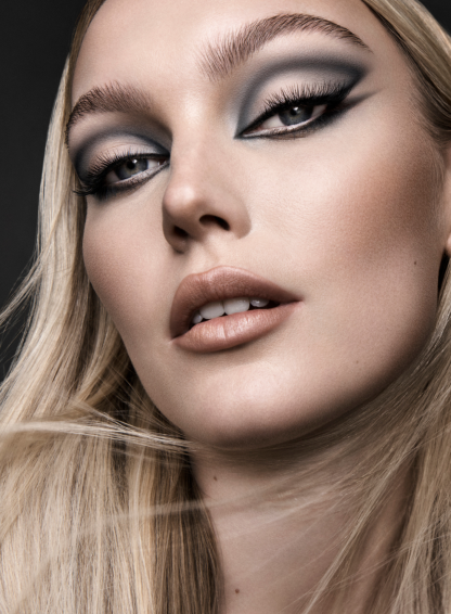 Use “INTRA+FATUM” with an angled or pencil brush along the eyes to create my signature eyeliner look. Use “INTRA” for a soft, eye enhancing brown liner look, or dip your brush along the dark side “FATUM” for a classic black liner that emphasizes your lash line.