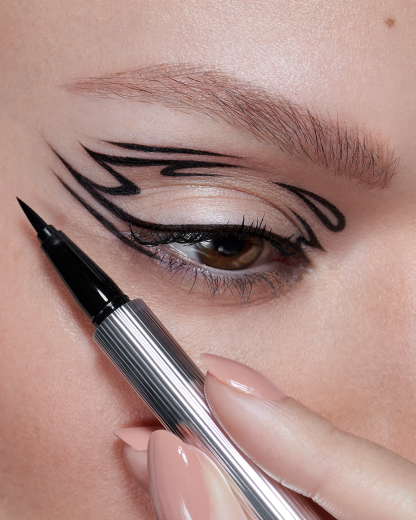 Heroline is an ultra-black eyeliner made for extreme wear and precision. Its vegan rich ink formula matched with the brush tip length makes gliding on your liner so intuitive, yet extremely bold and resistant.