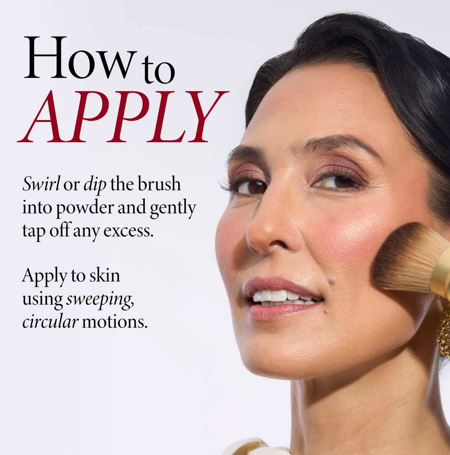 Ideal for both loose and pressed powders, use this travel-friendly tool to add foundation, color, highlight, or contour the face.