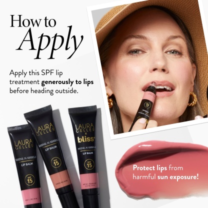 You’re on guard! Laura’s silky-smooth lip balms not only coat lips with a soft wash of shiny color, but provide SPF 15 protection against sun damage.